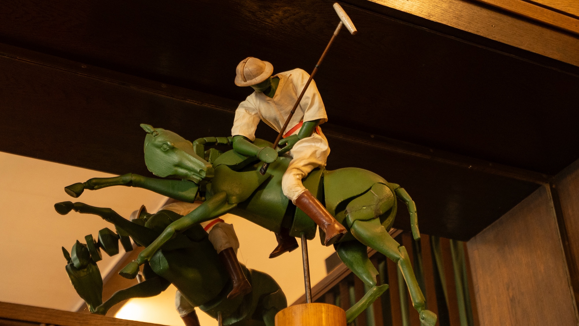 Ein Polospieler in dynamischer Pose, Schläger erhoben, das Pferd im Galopp im Knize-Geschäft. (Foto: Amin Zaazou)
