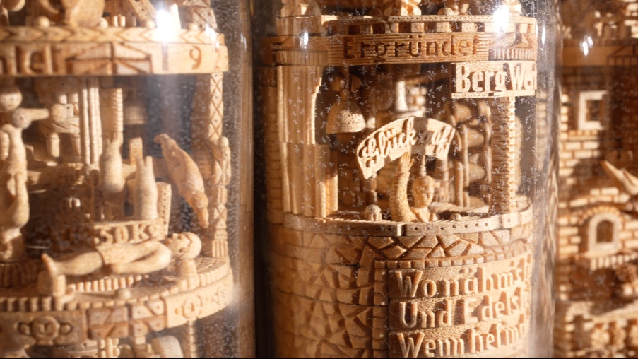 Johann Hengstberger war ein einfacher Bauer ohne Tischlerausbildung und doch schuf er ein hölzernes Kunstwerk von unglaublicher Detailverliebtheit. In fünf Glasflaschen schnitzte er filigrane Szenen seines Lebens, in dem er mit feinem Werkzeug in deren Inneren arbeitete: Apfelbäume und Weinberge, Spinnräder, Zirkusaufführungen und Bergwerke. Jede der Ein-Liter-Flaschen enthält winzige, exakt gearbeitete Holzfiguren, bewegliche Mechanismen und sogar selbstgeschriebene Gedichte mit winziger Schrift. Jedes der rund 500 Einzelteile pro Flasche ist klein genug, um durch die schmalen Hälse der Flaschen zu passen. Selbst Experten rätseln: Wie hat der Mann das geschafft?